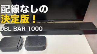 完全ワイヤレスのリアスピーカーで配線ゼロのホームシアターが作れるJBL BAR 1000を実機レビュー。BAR 800・後継機MK2との違いも比較しつつ、メリット8つ・デメリット6つを正直に解説します。